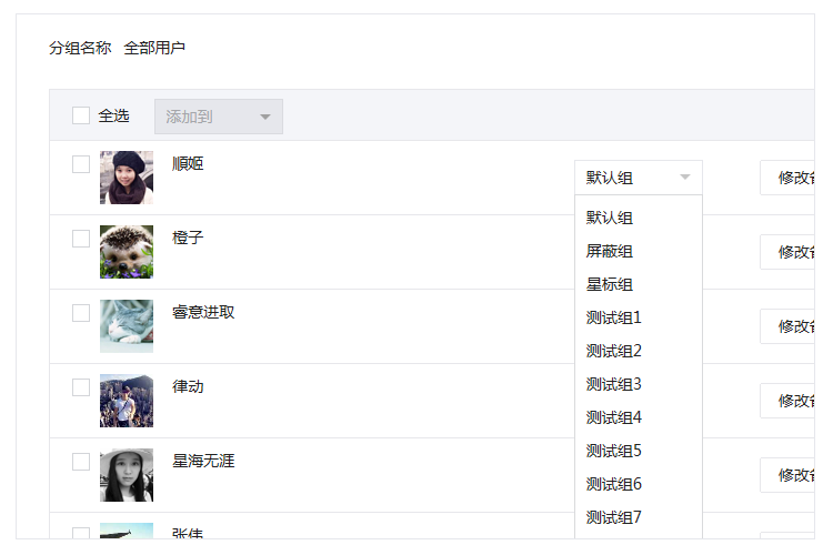 每頁顯示用戶擴(kuò)展到20個,且用戶下拉分組最多可同時出現(xiàn)10個,方便運(yùn)營者操作。