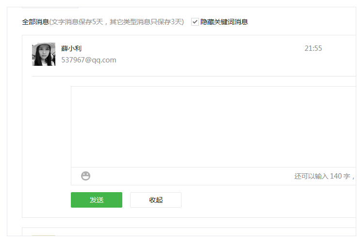 加強(qiáng)回復(fù)框與對應(yīng)粉絲的關(guān)聯(lián),縮小消息回復(fù)框。且新增換行快捷鍵Shift+Enter,方便運(yùn)營者與粉絲個性化互動。