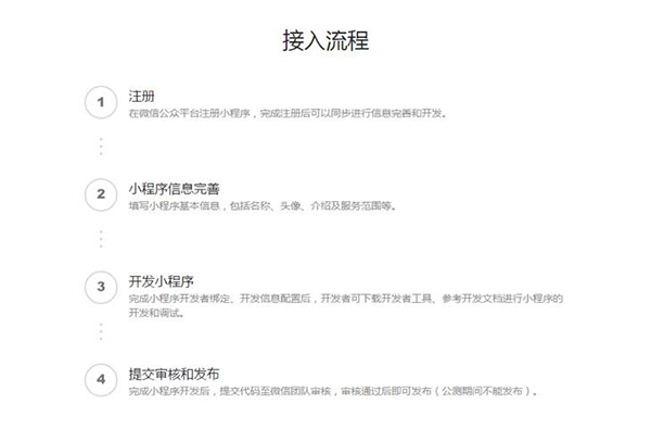 3、開發(fā)小程序:完成小程序開發(fā)者綁定、開發(fā)信息配置后,開發(fā)者可下載開發(fā)者工具、參考開發(fā)文檔進行小程序的開發(fā)和調(diào)試。