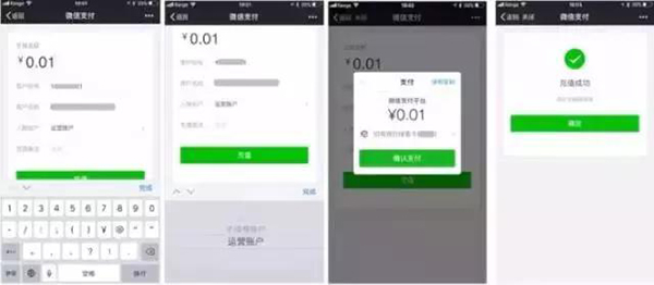 支持商戶通過掃碼付款的方式,使用微信支付個人綁定的銀行借記卡向自己的商戶號充值。充值成功后,商戶可以退款、發(fā)放企業(yè)紅包、使用營銷工具等功能。