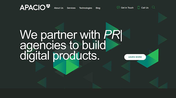 好的設(shè)計(jì)就應(yīng)該緊隨時(shí)代的發(fā)展,這樣才能具有富有時(shí)代感的體驗(yàn),背景紋理設(shè)計(jì)同樣如此。當(dāng)下,最流行的設(shè)計(jì)元素之一就是幾何圖形元素,將幾何圖形融入到背景當(dāng)中,毫無(wú)疑問(wèn)非常具有吸引力,如:Apacio這個(gè)網(wǎng)站,它采用深色的背景之上混合色彩鮮艷的幾何圖案,創(chuàng)建出富有深度且抓人眼球的視覺(jué),而文字方面采用了簡(jiǎn)約的非襯線體,使得它們可以從黑色和綠色的背景中脫穎而出。