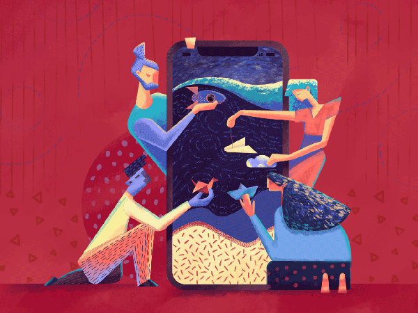 寓言法是最為開腦洞的設計方法,將想要表達的信息,如:IT領域的主題,投射到其他的領域當中,或借由其他領域的插畫內容表達出來。這類插畫的繪制,常常會以意想不到的方式來呈現(xiàn)出來,隱喻是它的主體,而諸如數(shù)碼設備這樣的常見元素,反而居于次要的位置。