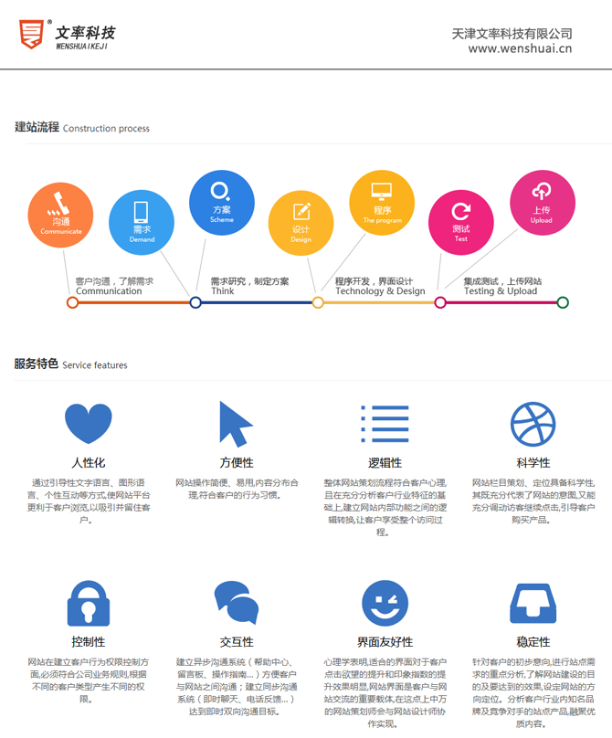 為您的網站解決后顧之憂,您的產品及服務;我們采用最新的搜索引擎技術和最專注的人工SEO,對網站進行人工搜索引擎 優(yōu)化排名 讓您獲取更多的排名及流量。 文率科技小編分享一下天津文率科技有限公司關于天津網站建設的開發(fā)流程+建站內容+建站周期的分析以及網站備案的具體內容: