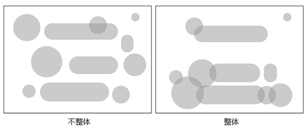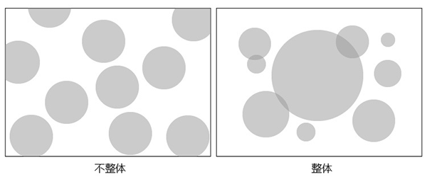 有些設計師在做設計時喜歡將所有空白都填上元素,這種做法不僅會造成畫面擁擠不透氣,還會使畫面看起來很散。若版面中元素東一個西一個,像一盤散沙一樣,那就回顯得非常的不整體,由于畫面的視覺不集中,各元素之間也就很難關聯(lián)中起來。所以,一定要各個移動元素集中排放,除此之外,還可以在元素之間增加一個元素將它們貫穿起來。
