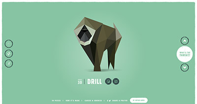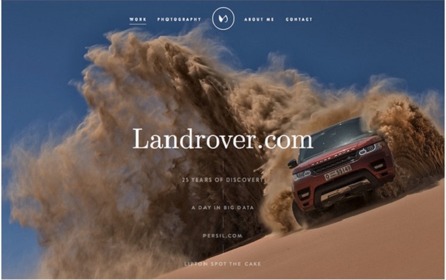 該圖的色彩對(duì)比是棕褐色沙塵與深藍(lán)色天空的強(qiáng)烈對(duì)比,能看到色輪,揚(yáng)起的黃褐色沙塵創(chuàng)造了一種視覺運(yùn)動(dòng)路線,將你的目光指引到紅色的車身方向(也將你的視線帶往了白色文本所在位置)。這種網(wǎng)頁可視化設(shè)計(jì)的色彩搭配在審美上達(dá)到了一種平衡。