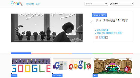 發(fā)布著Google在一些紀(jì)念日所設(shè)計(jì)的特殊logo的網(wǎng)站??梢钥吹?/span>Google的“歷代節(jié)日logo”。Google公司內(nèi)部叫它“Doodles”,英語指的是“亂涂亂畫”。很厲害喲。