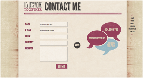 這里所說的簡約并非是簡單,而是要保證當你在設計過程中使用到圖片時,要確保它們不要雜亂、令人討厭或不被理解,過于花哨、感覺雜亂的設計讓用戶理解起來會比較費勁兒。一般來說,一個干凈、簡單的網(wǎng)頁設計最終會成為一個可用性高的網(wǎng)頁設計,因為它在與用戶的交互中不會使其產(chǎn)生混淆,易理解。如:Giampiero Bodini 的關于我們頁面并沒有使用復雜的設計技巧,而是在素描的繁復背景上,放上一個簡單的矩形,將聯(lián)系方式與相關信息置于其中。繁復和簡單,手繪和圖形,形成了鮮明的對比。