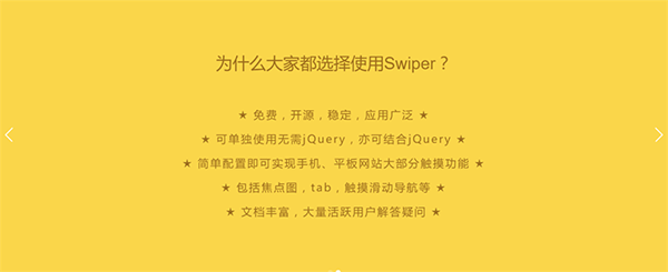 Swiper是一款免費(fèi)、輕量級(jí)的移動(dòng)設(shè)備觸控滑塊的js框架,使用硬件加速過(guò)渡(如果該設(shè)備支持的話)。主要使用于移動(dòng)端的網(wǎng)站 。其實(shí)類似這樣的滑動(dòng)插件的效果庫(kù)非常多,但像他這樣,文檔能做的那么專注的就很少鳥(niǎo)。所以推薦推薦哦!
