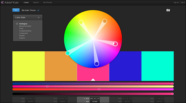 關于Adobe Kuler在線配色工具,相信大多數(shù)設計師都不陌生,它是一個能幫助設計師節(jié)約時間且功能強大的產(chǎn)品,你不僅可以在上面尋找到預置的配色方案,也可以創(chuàng)建屬于自己的色板,并且該軟件是完全免費的,當我們在任何作品上使用它的時候完全不用擔心有版權問題。