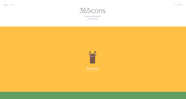 365cons 是Amy Devereux 所制作的每日更新的“圖標(biāo)日記”。該網(wǎng)站集聚很多的與眾不同的圖標(biāo)設(shè)計(jì),這些圖標(biāo)被設(shè)計(jì)成不同的樣式,不同的風(fēng)格,從這些設(shè)計(jì)作品中不難看出作者的靈感來源是相當(dāng)不錯的。