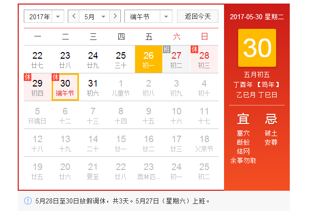 天津網站建設-文率科技根據國務院關于2017年部分節(jié)假日安排,將放假三天:2017年5月28日至5月30日放假公休,5月27日(星期六)照常上班。