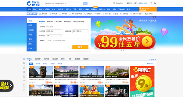 藍色無形之中給予了人們一種安全感,這也是為什么很多的旅游行業(yè)的app和網(wǎng)站采用藍色作為UI設計的主要原因,它隱隱傳遞出可靠,信任的感覺,而這無疑也是旅游類應用和網(wǎng)站的最佳選擇,如目前深的大眾親睞的攜程旅游網(wǎng),它的logo以及網(wǎng)站整體的主色調(diào)采用的都是藍色的設計。