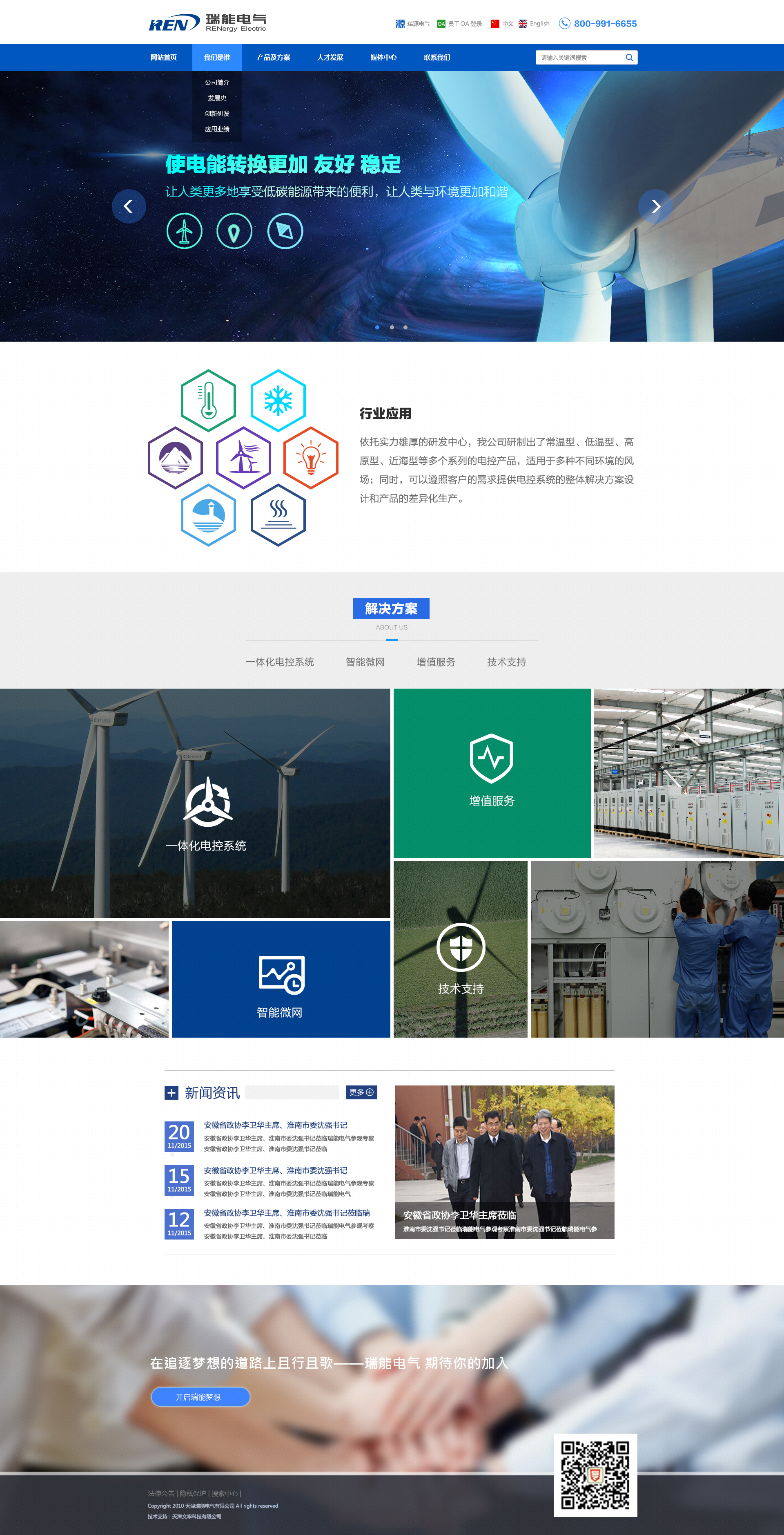 瑞能電氣堅(jiān)持自主創(chuàng)新,立志打造可再生能源領(lǐng)域及電力電子領(lǐng)域電氣系統(tǒng)行業(yè)民族品牌,致力于成為市場(chǎng)領(lǐng)跑者和受人尊敬的世界一流的公司。瑞能電氣是國(guó)內(nèi)⑴家自主開(kāi)發(fā)風(fēng)電電控系統(tǒng)核心控制技術(shù)的企業(yè)。公司擁有150余人的研發(fā)技術(shù)團(tuán)隊(duì),自主開(kāi)發(fā)的風(fēng)電主控系統(tǒng)、變頻器、變槳系統(tǒng)和SCADA系統(tǒng),達(dá)到國(guó)際先進(jìn)水平;承擔(dān)微電網(wǎng)國(guó)家“863”計(jì)劃課題;產(chǎn)品應(yīng)用于全球150多個(gè)風(fēng)電場(chǎng)。目前業(yè)務(wù)涉及可再生能源項(xiàng)目開(kāi)發(fā)、可再生能源電氣控制領(lǐng)域、節(jié)能減排和智能驅(qū)動(dòng)領(lǐng)域,為風(fēng)電、光伏、工業(yè)自動(dòng)化、智能制造等行業(yè)提供定制化的電氣系統(tǒng)一體化解決方案以及工程現(xiàn)場(chǎng)維護(hù)服務(wù)、備品備件服務(wù)等。
